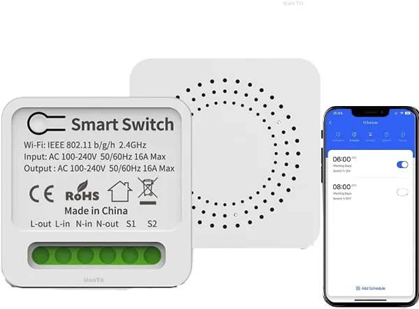 مع تصميمه الصغير والأنيق، يمكنك تركيب هذا المفتاح بسهولة في أي مكان في منزلك، سواء في الغرفة أو المطبخ أو غرفة المعيشة. يمكنك برمجة المفتاح لتشغيل وإيقاف تشغيل الأجهزة في أوقات محددة، وكذلك ضبط جدول زمني لتلبية احتياجاتك اليومية بشكل أكثر ذكاء.